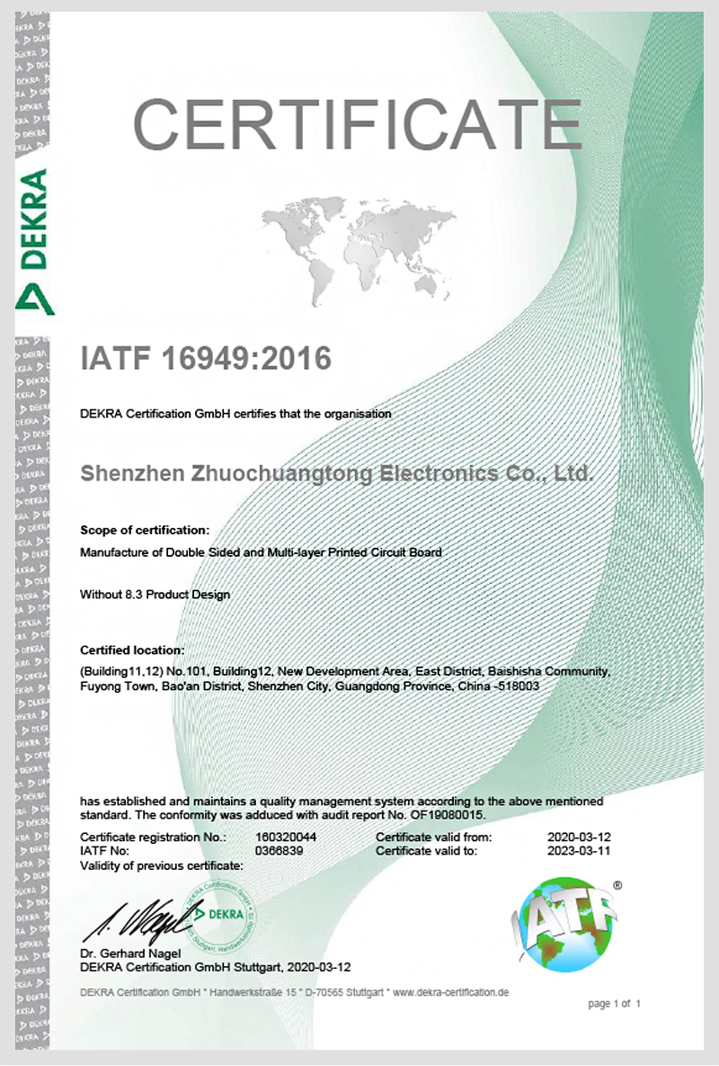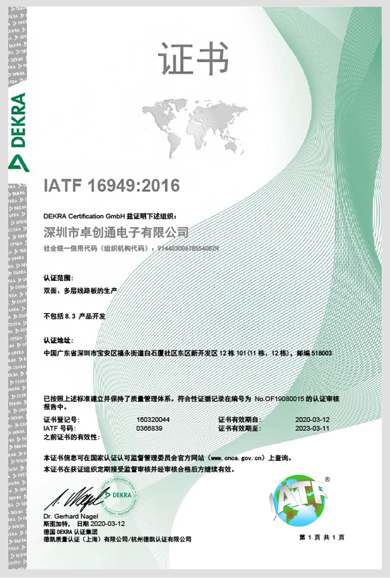 我們擁有PCB行業(yè)的完整證書(shū),包括:ISO9001、ISO14001、ISO16949、UL、SGS、IATF等。